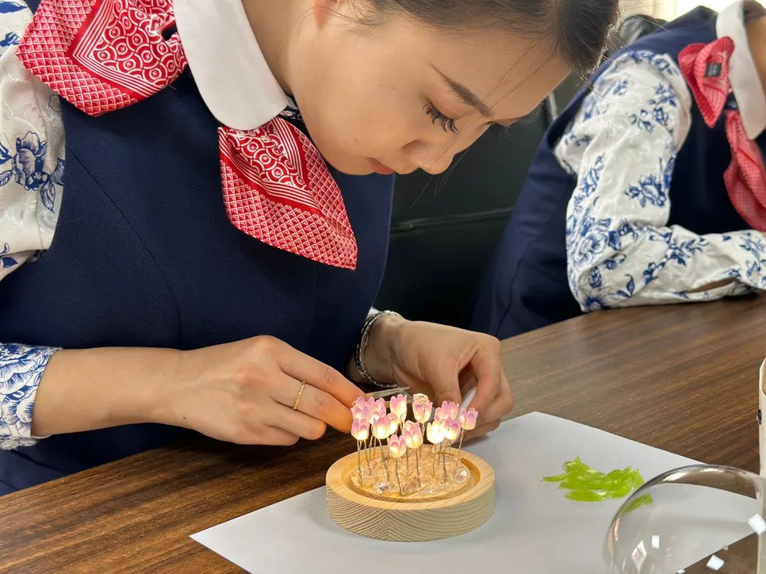 所有人都兴趣盎然,神情专注,很快,一盏盏郁金香小夜灯亮了起来。看着自己动手制作的郁金香小夜灯,每个人脸上都洋溢着快乐。
