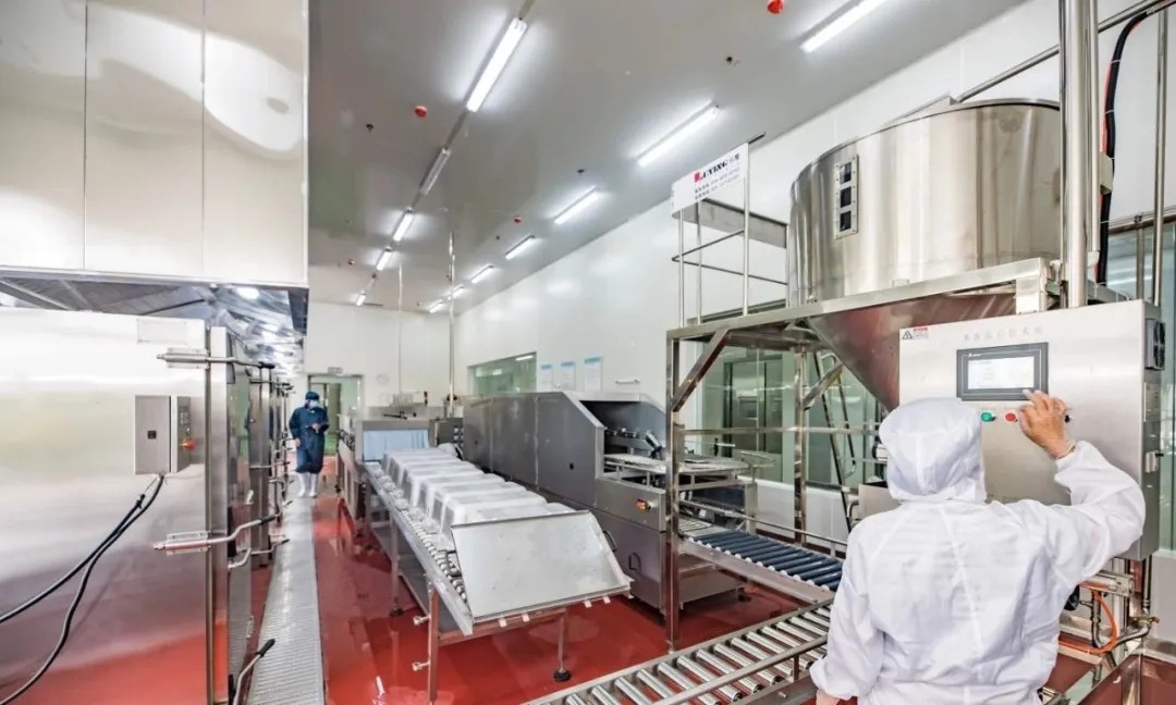 通过四条高效包装线,完成从称重、覆膜、异物检测(包括X光机和金属检测)、打码等一系列步骤。包装线还设有人工质检、核对和入库等环节,确保每一步都严格监控,从而保障食品的安全与质量。整个生产流程都在360度全方位监控之下,为食品安全提供了坚实的保障。
